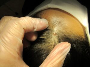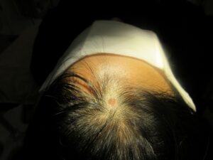 30代女性。頭皮内のホクロの除去。2ヶ月目。髪の毛が禿げない方法です。