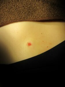 今回のお写真は左肩甲骨の大きいホクロの剥ぎ取り法による切除の2週目の経過のものです。