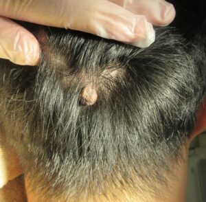 今回のお写真は頭皮内の大きいホクロの切除の2ヶ月目の経過のものです。